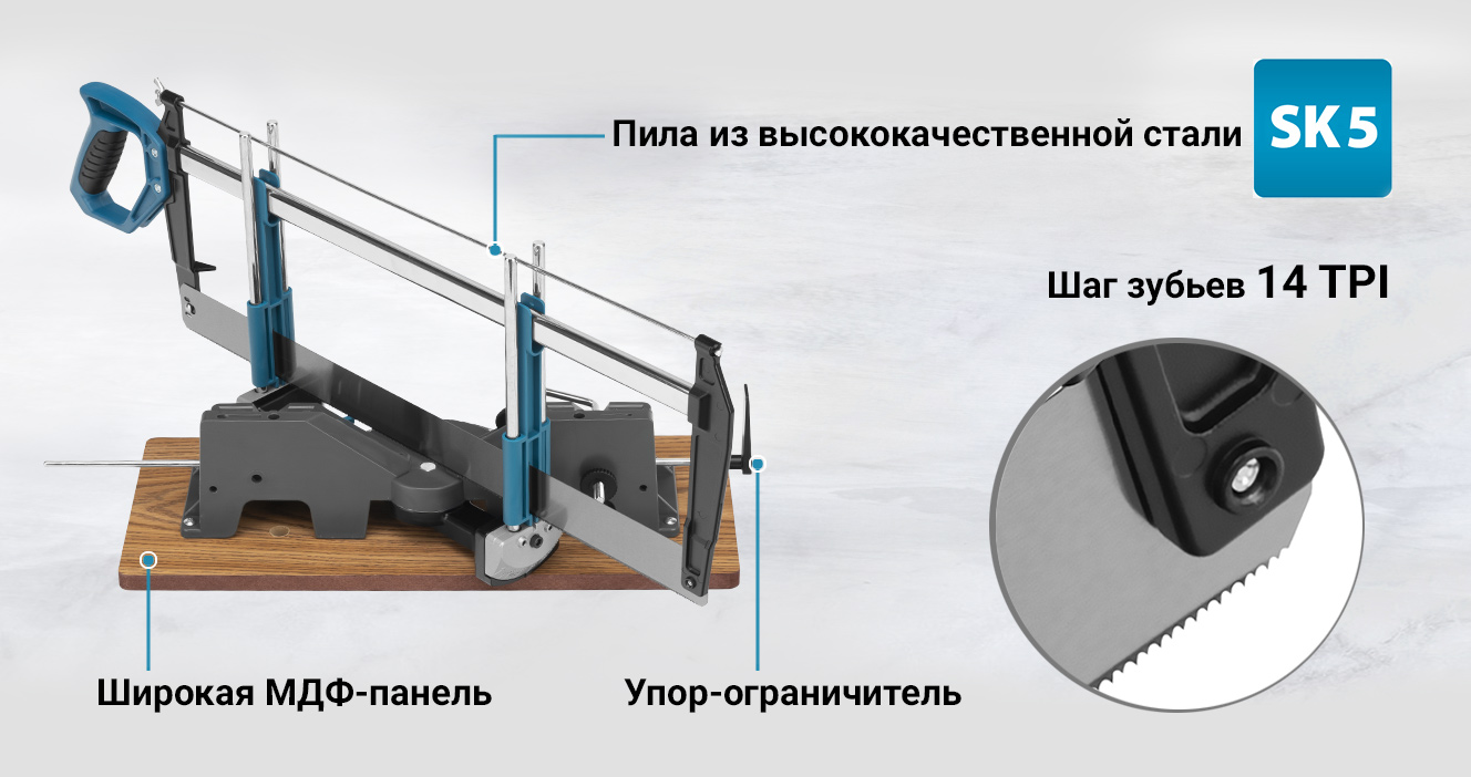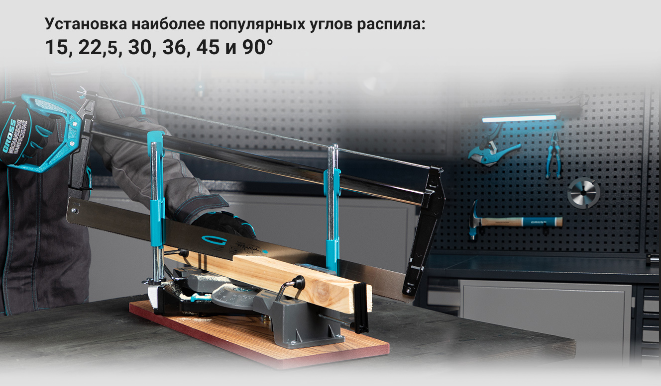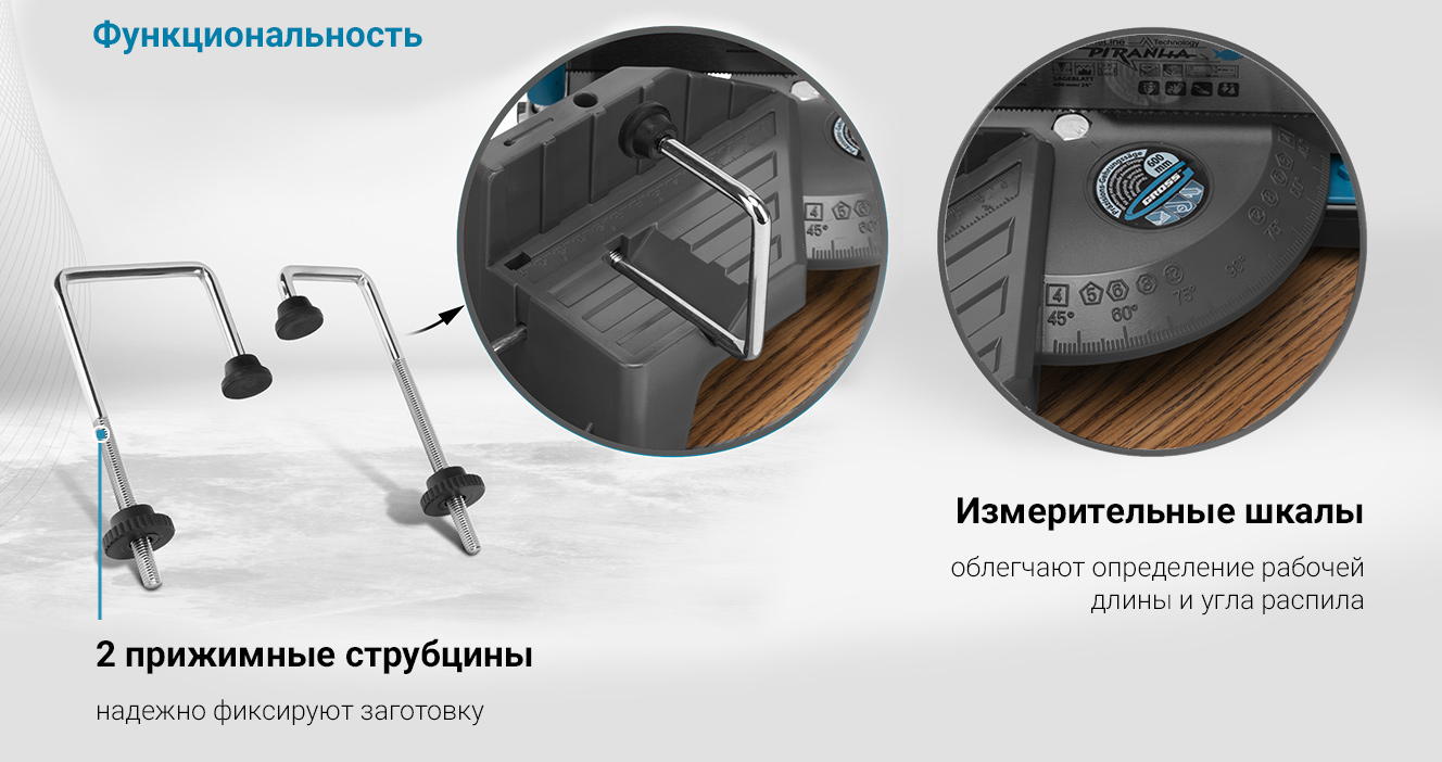 - Функциональность — предусмотрена возможность установки наиболее популярных горизонтальных и вертикальных углов распила: 15, 22,5, 30, 36, 45 и 90°