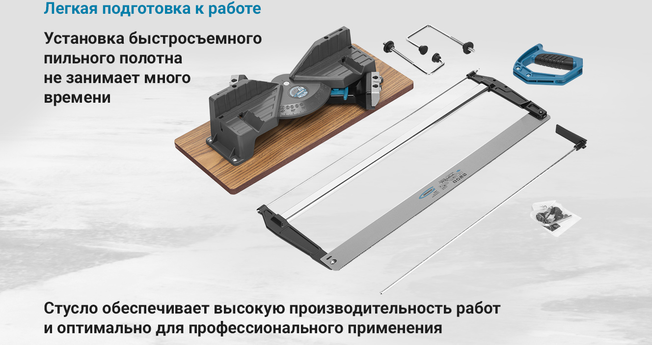 - Легкая подготовка к работе — установка быстросъемного пильного полотна не занимает много времени