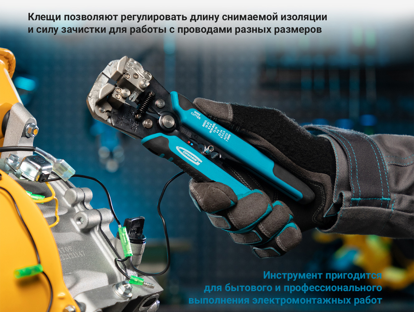 Щипцы для зачистки электропроводов Gross 17718 предназначены для обрезки и зачистки медных и алюминиевых проводов, обжима изолированных и неизолированных клемм, а также одножильных проводов сечением 0,05-8 кв. мм. Позволяют регулировать длину снимаемой изоляции и силу зачистки для работы с проводами разных размеров. Инструмент пригодится для бытового и профессионального выполнения электромонтажных работ.
