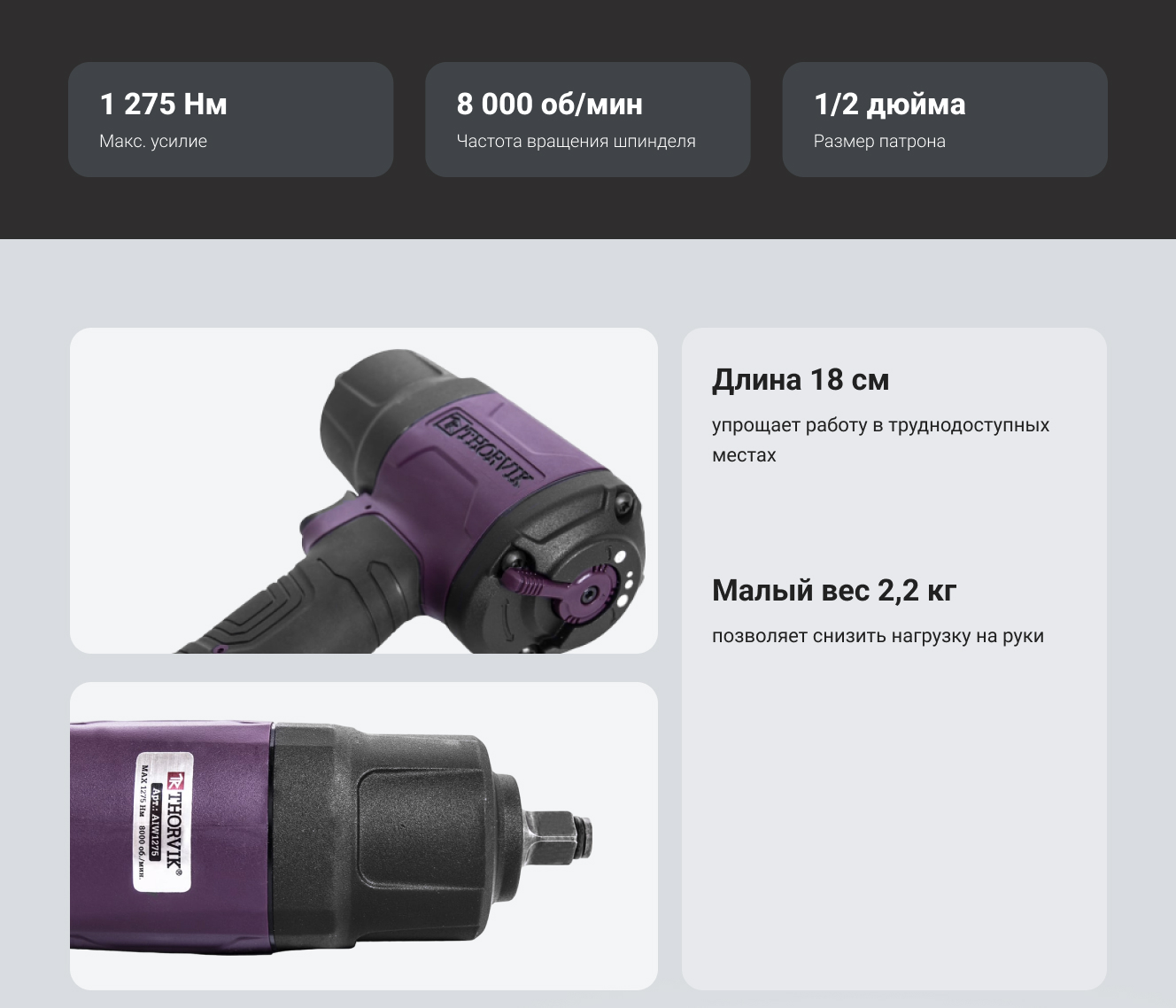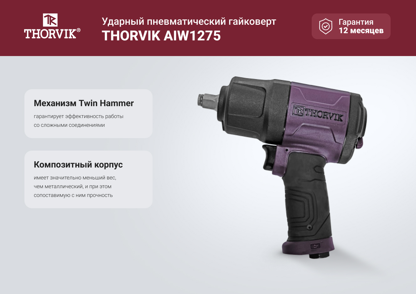 Гайковерт ударный пневматический THORVIK AIW1275 1/2DR 8000 об/мин, 1275 Нм 053819