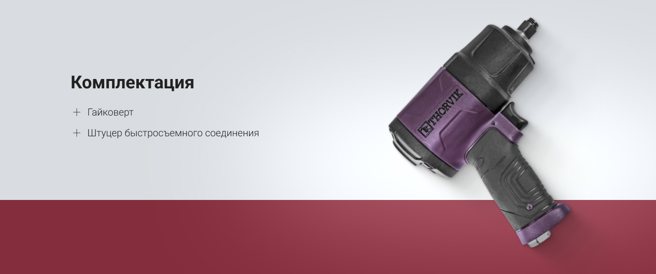 Пневматические гайковерты THORVIK применяются для проведения слесарно-монтажных работ и работ, связанных с обслуживанием резьбовых соединений в мастерских, цехах и производственных помещениях, имеющих источник сжатого воздуха или компрессор, необходимой мощности и производительности с давлением не ниже 6 кг/см²., в температурном диапазоне от -20°С до +50°С, персоналом, имеющим соответствующую квалификацию, знакомым с правилами техники безопасности, условиями эксплуатации и навыками работы с пневмомеханическим инструментом.