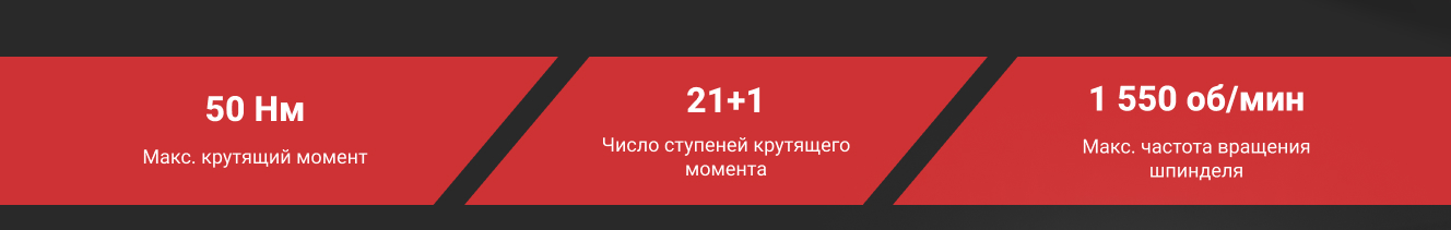Так же модель оснащена импульсной функцией, которая необходима при засверливании в гладких металлических поверхностях (нержавеющая сталь), а так же при выкручивании поврежденного или плотно сидящего крепежа. Надежный двухскоростной редуктор обеспечит высокую продуктивность работы, а функция мягкой настройки крутящего момента поможет выбрать необходимое усилия для разных работ с крепежом.