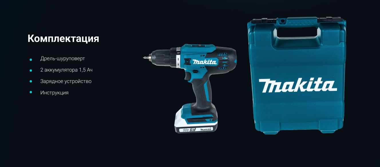 Приобрёл данную модель за 8200 рублей, на смену старому шуруповерту. Что могу сказать, в общем и целом качественная, надёжная модель шуруповерта от Макита, своих денег точно стоит. У шуруповерта 2 скорости, что очень удобно, в комплекте два аккумулятора. Брал для сборки мебели и ремонта балкона, ну и по дому всякие работы тоже приходится периодически делать. Со всеми задачами справляется на отлично. Даже большие саморезы загоняет со свистом, вообще чувствуется запас. Металл сверлит как заявлено тоже без проблем. В хорошем смысле удивили аккумуляторы, зарядки хватает прям очень надолго и заряжается тоже достаточно быстро. Когда выбирал модель, немного смущала масса и размер шуруповерта, так как есть модели полегче и поменьше, но там шла потеря в характеристиках, поэтому выбрал эту модель и, в последствии, не пожалел. Кейс достаточно удобный, кое-что, помимо самого шуруповерта там еще помещается. Ещё из плюсов, это прорезиненный корпус, тем самым шуруповерт не скользит, удобно лежит в руке, а ещё есть электронный тормоз, поэтому шуруповерт останавливается сразу. Отсутствие подсветки и индикатора зарядки не беспокоит, но если бы имелись, был бы вообще идеальный вариант. В общем, инструмент Макита, хороший выбор, у меня ещё есть лобзик и тоже нареканий к нему никаких нет. Для работ по дому, сборке мебели, идеальный вариант.
