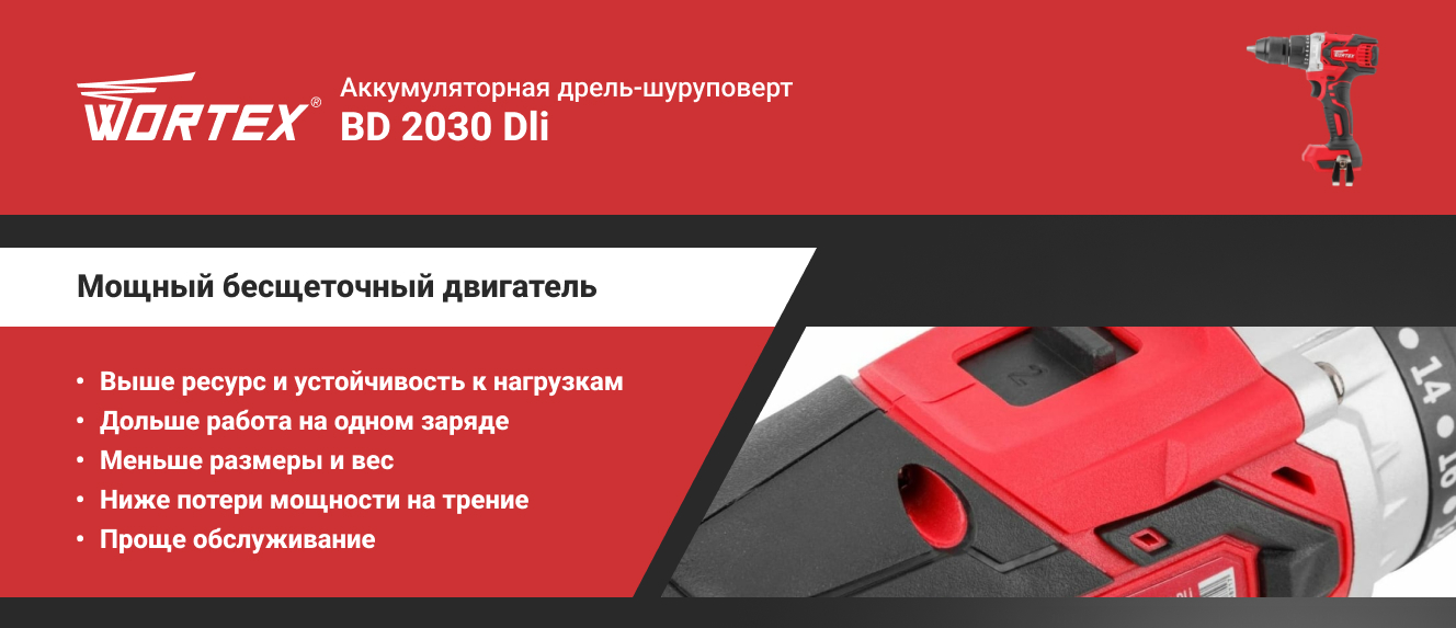 Аккумуляторная дрель-шуруповерт WORTEX BD 2030 Dli ALL1 (BD2030Dli0029) оснащена мощным двигателем с высоким крутящим моментом до 80 Нм, имеет металлический быстрозажимной патрон 13 мм. Для удобства работы предусмотрена подсветка рабочей зоны, индикатор уровня заряда, поясное крепление. Бесщеточный двигатель способствует повышенной устойчивости дрели к нагрузкам. Для безопасности пользователя дрель-шуруповерт укомплектована дополнительной рукояткой, а основная рукоятка имеет покрытие из резины.