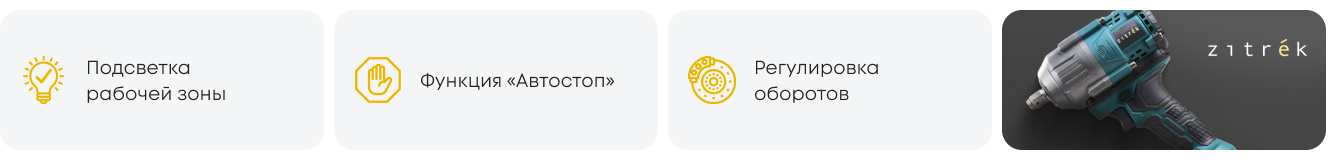 - Функция автостоп позволяет избежать потери гайки при раскручивании