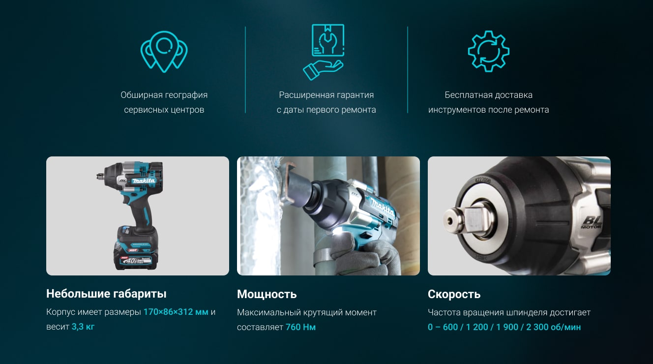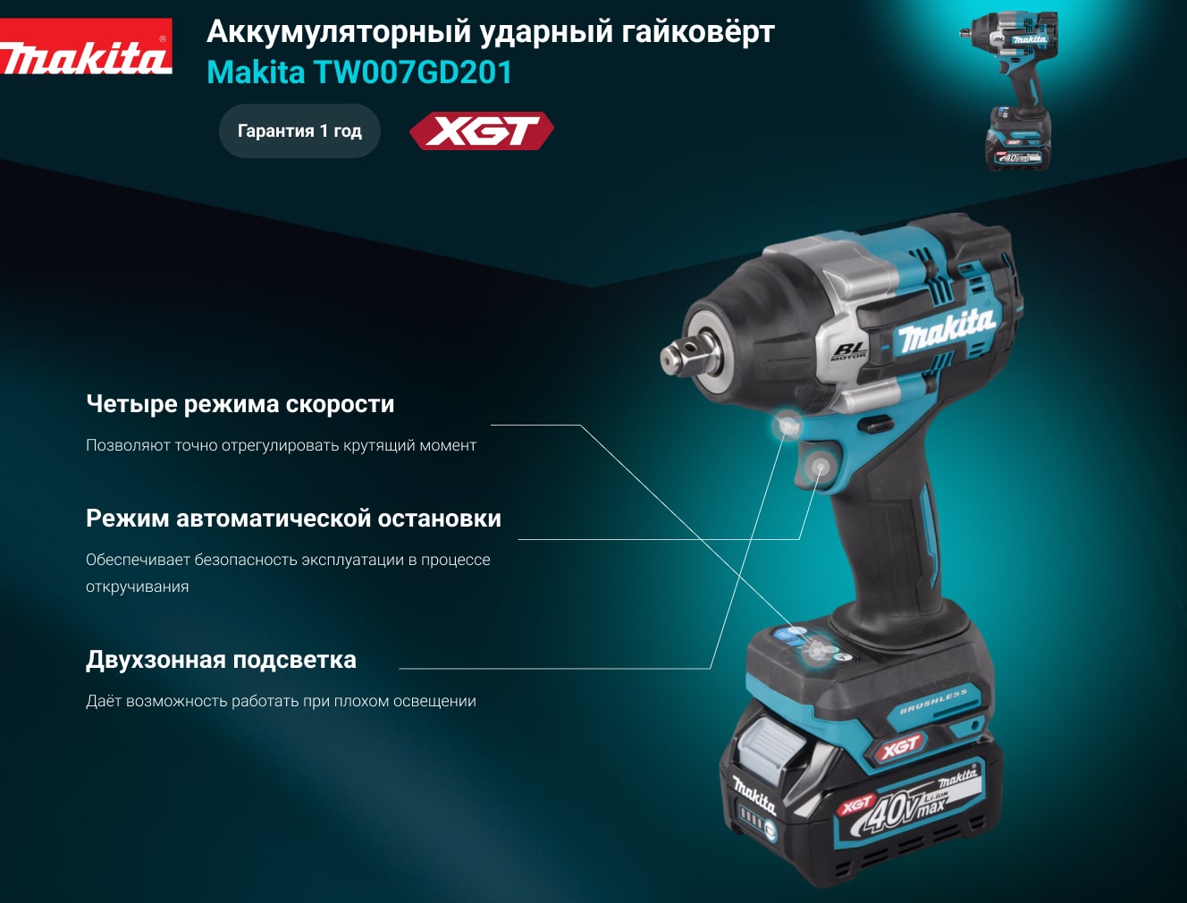 - Компактный дизайн и легкий вес Makita XGT BL TW007GD201