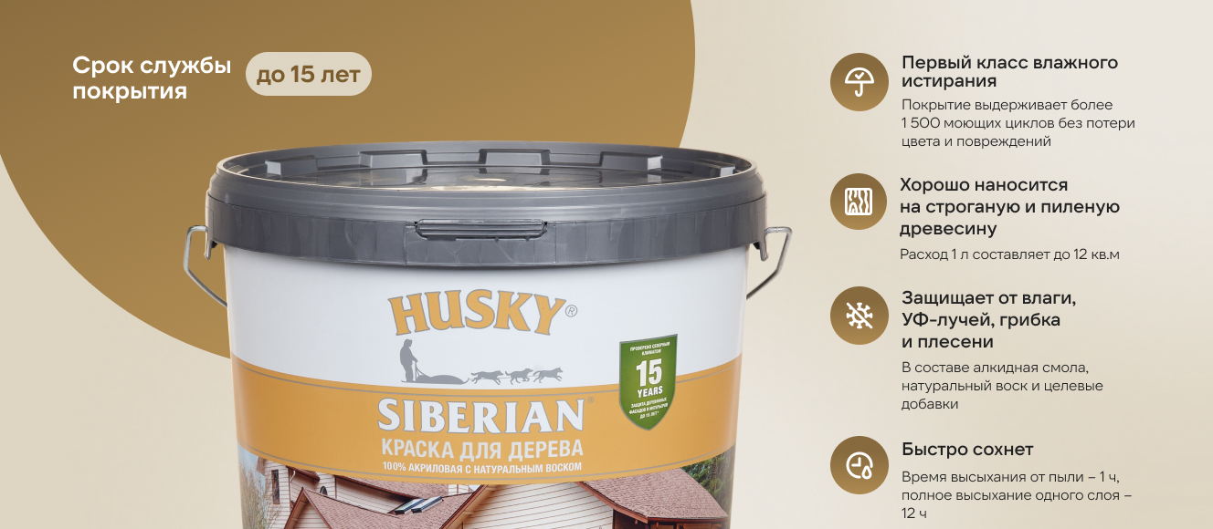 Акриловая краска для дерева HUSKY SIBERIAN коричневый RAL 8017, 9 л 31943