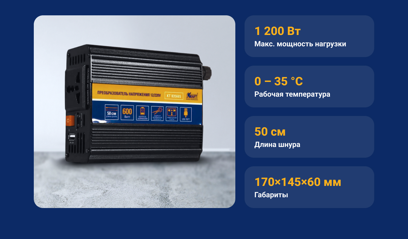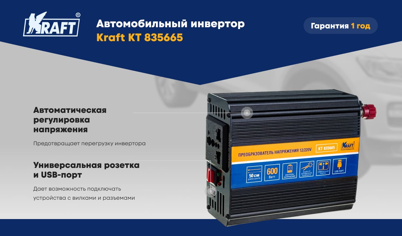 Преимущества автомобильного инвертора KRAFT KT 835665