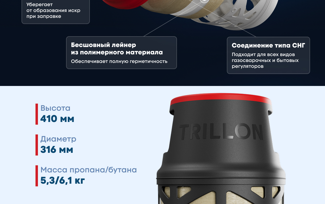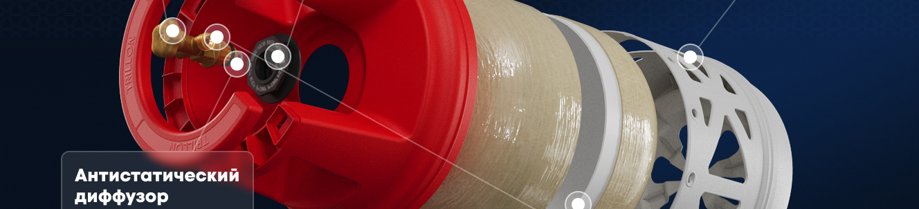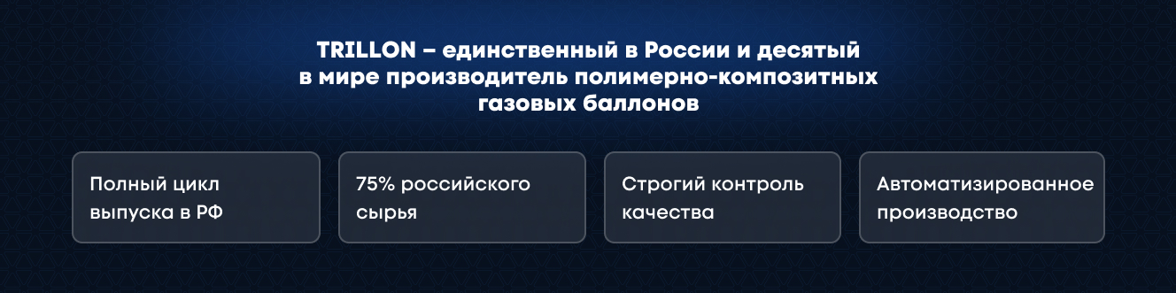 TRILLON — единственный в России и десятый в мире бренд, самостоятельно разрабатывающий и производящий полимерно-композитные газовые баллоны полным циклом.