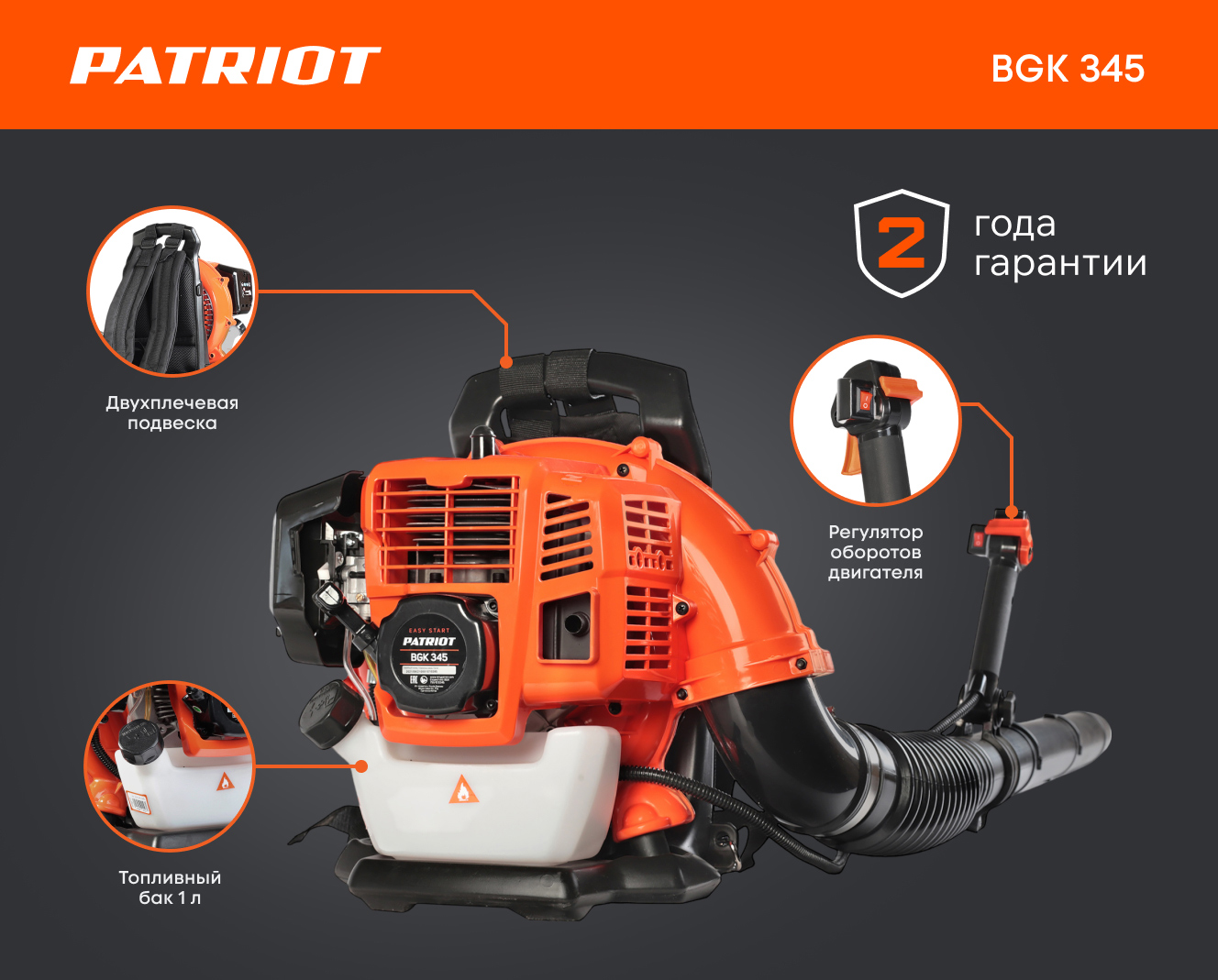 Бензиновая ранцевая воздуходувка PATRIOT BGK 345 755100345