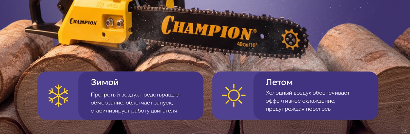 Бензопила CHAMPION 241-16 незаменима при работах по валке деревьев, раскряжевке, обрезке ветвей и распиливания деревянных заготовок.
