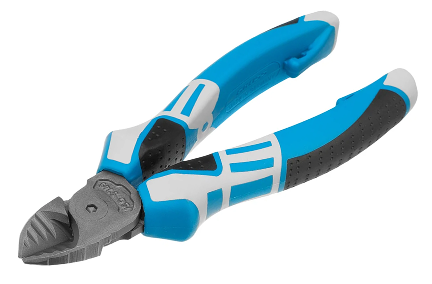 Для перекусывания проводов, металлических стяжек или кабелей отлично подойдут бокорезы марки GROSS. Их режущие элементы закалены до твердости 62 HRC, что позволяет работать даже с очень крепкими материалами. Шарнир смещен ближе к режущим кромкам – это увеличивает усилие реза на 20% по сравнению с другими моделями. Длина бокорезов составляет 130 мм.