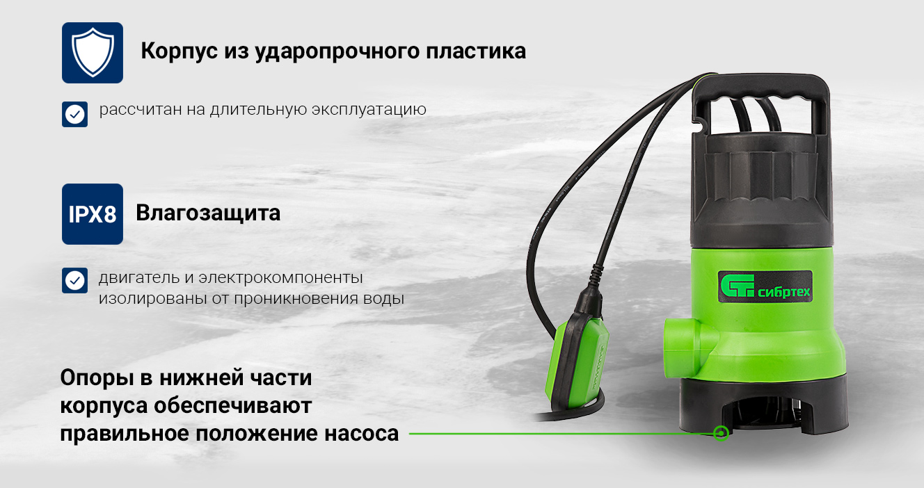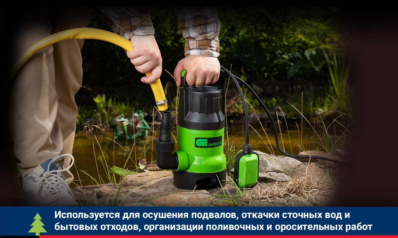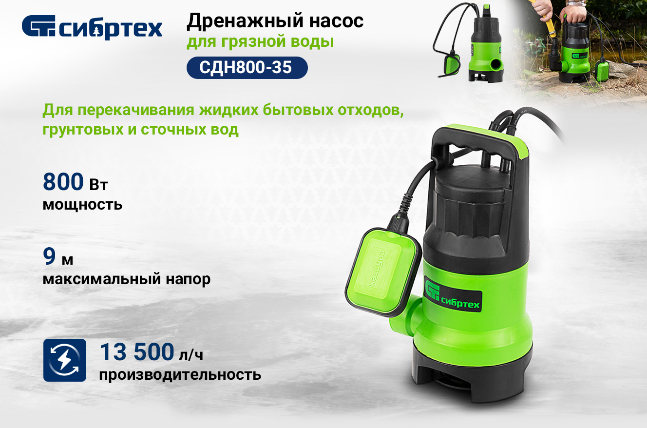 Дренажный насос для грязной воды СИБРТЕХ СДН800-35 97265 используется для осуществления поливочных работ, откачки воды из помещений и т.д.
