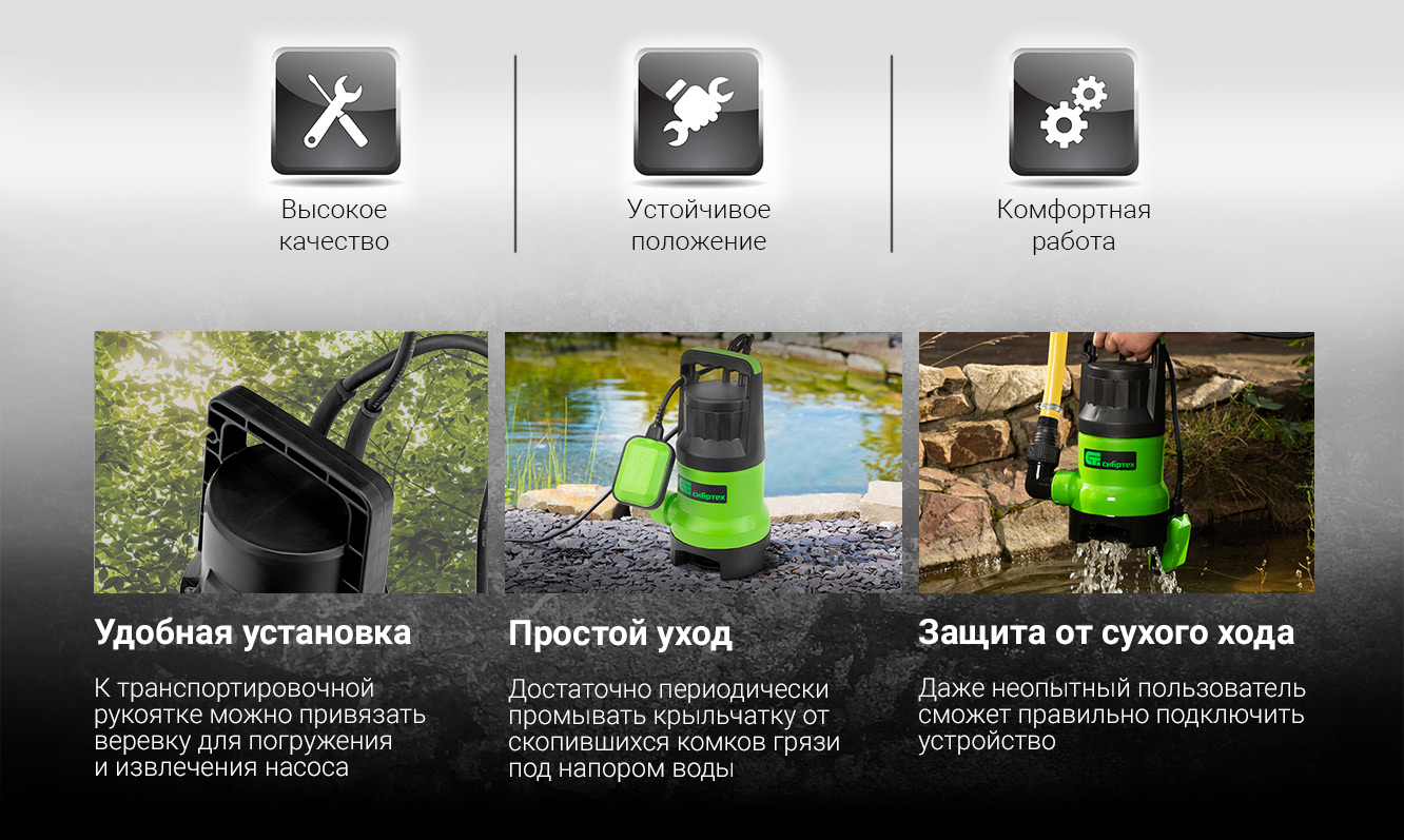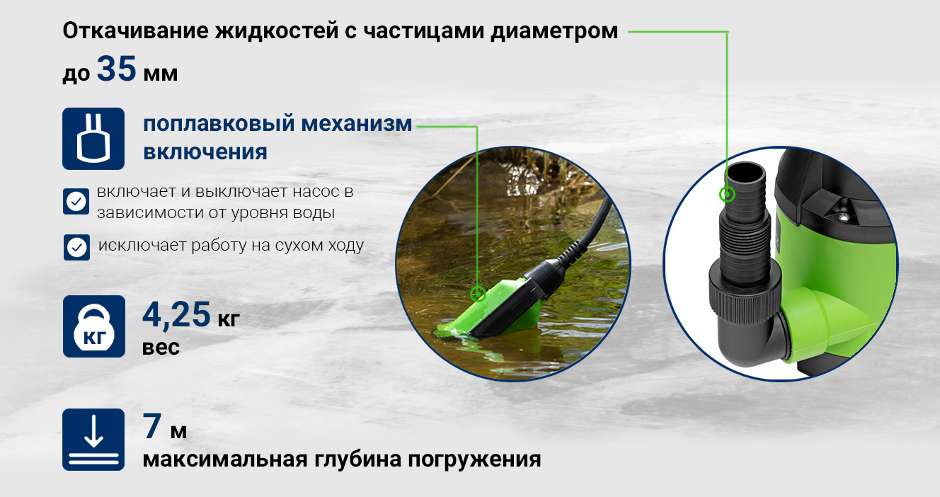 Высокая производительность 13 500 л/ч обеспечивает напор до 9 м