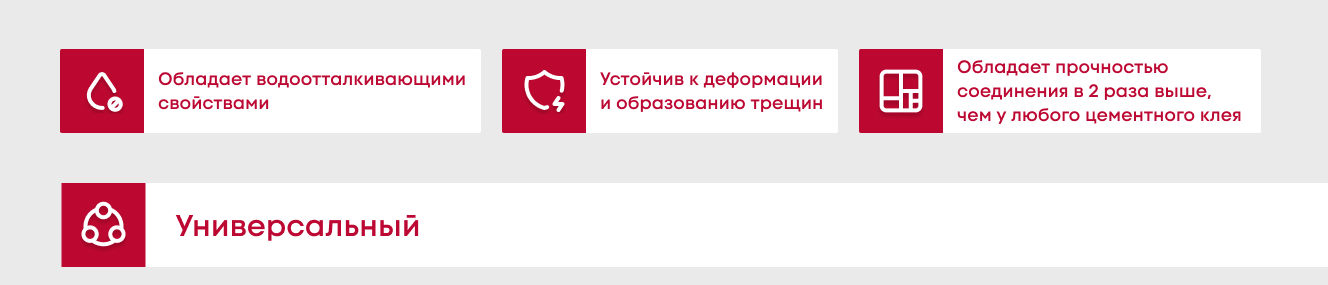 - Высокая адгезия до 5 МПа позволяет надежно фиксировать плитку на самых разных основаниях: бетон, дерево, металл, ПВХ и даже на существующих плиточных поверхностях.