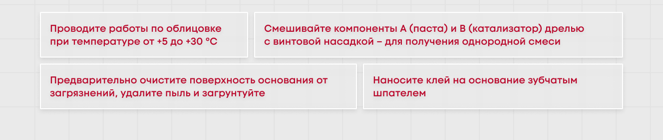 - Подходит для любых видов облицовки, включая крупноформатные плитки более 300х300 см.