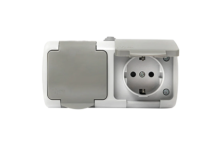 Двухместная розетка с заземлением, крышкой и защитными шторками – электрооборудование открытой установки, не занимающее много места. Благодаря компактности, удобному расположению всех контактов и лёгкому монтажу розетки подстроятся под необходимые запросы. Модель оборудована заземляющим контактом, чтобы стабилизировать работу электроприборов, и крышкой, которая защищает от попадания мелких предметов. Шторки открываются только при одновременном нажатии на них. С двух сторон выключателя расположены ступенчатые гермовводы, которые позволяют присоединить кабель-канал широкого диапазона сечений и защищает контакты от попадания воды.