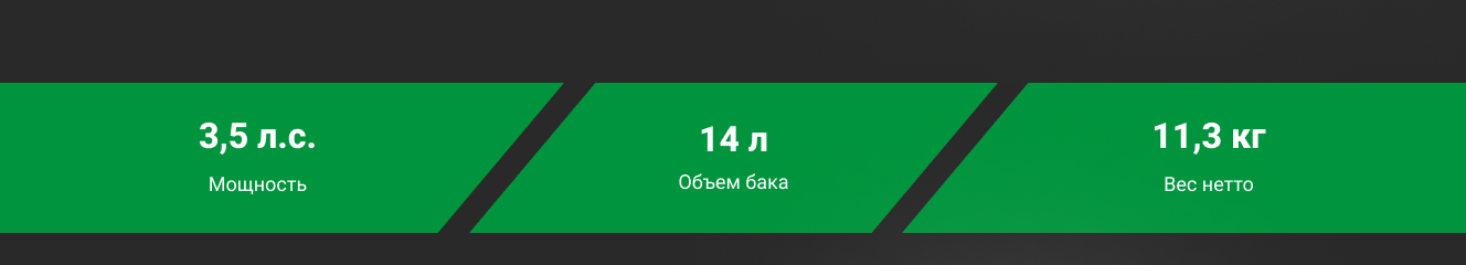 Оснащен двухтактным бензиновым двигателем и антивибрационными подушками двигателя.
