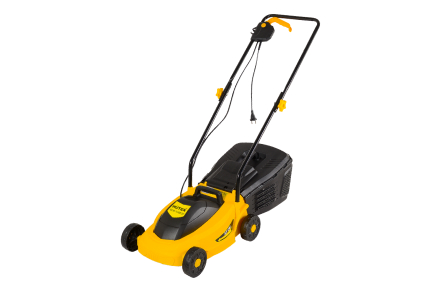 Электрогазонокосилка может работать непрерывно на площадках с доступным подключением к электрической сети 220 В. Режущий механизм защищен пластиковым корпусом, что обеспечивает долговечность техники и придает ей маневренность. За счет колес электрическая газонокосилка быстро перемещается по участку. Комфортное управление инструментом обеспечивает крепкая металлическая рукоятка.