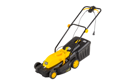В отличие от бензиновых и аккумуляторных моделей, электрическая газонокосилка не нуждается в топливе или длительной зарядке батареи. После подключения агрегата к электросети он будет готов к работе. Данная модель оснащена мощным электродвигателем на 1800 Вт и прочными стальными ножами. Высоту среза можно отрегулировать в пределах от 20 до 55 мм, что облегчает индивидуальный подход к обработке газона. Для регулировки высоты ножей и управления устройством используется рычаг, расположенный непосредственно на ручке.