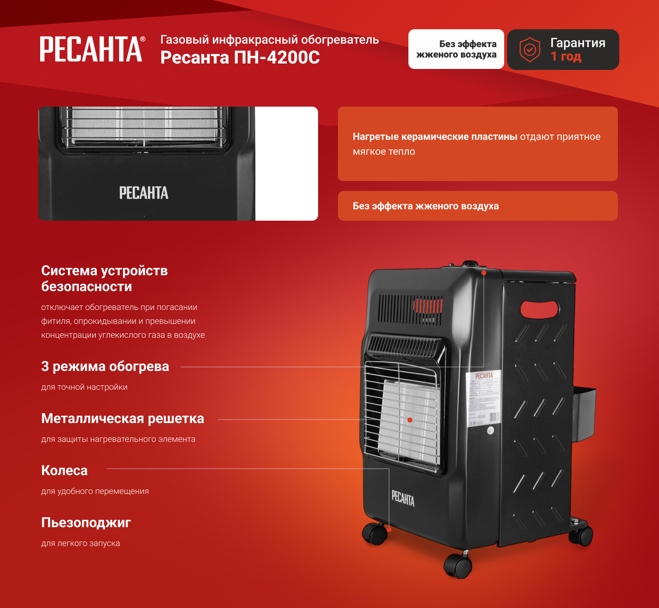 Газовый инфракрасный обогреватель Ресанта ПГ-4200С 67/5/12