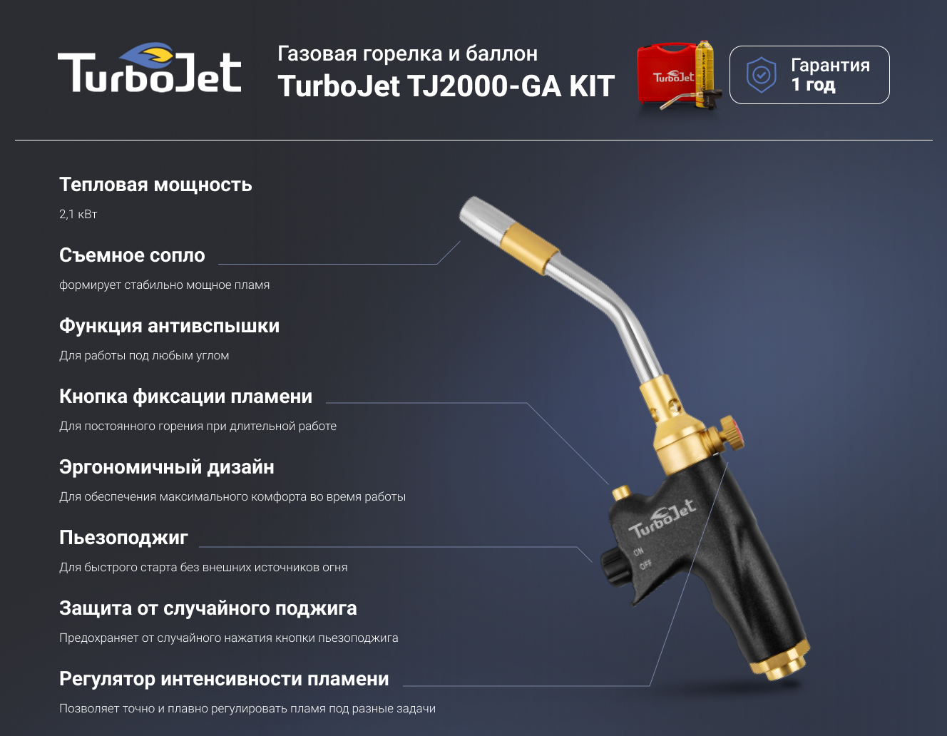 Набор Turbojet горелка с пьезоподжигом TJ2000-GA + баллон TJ750GA TJ2000-GA KIT