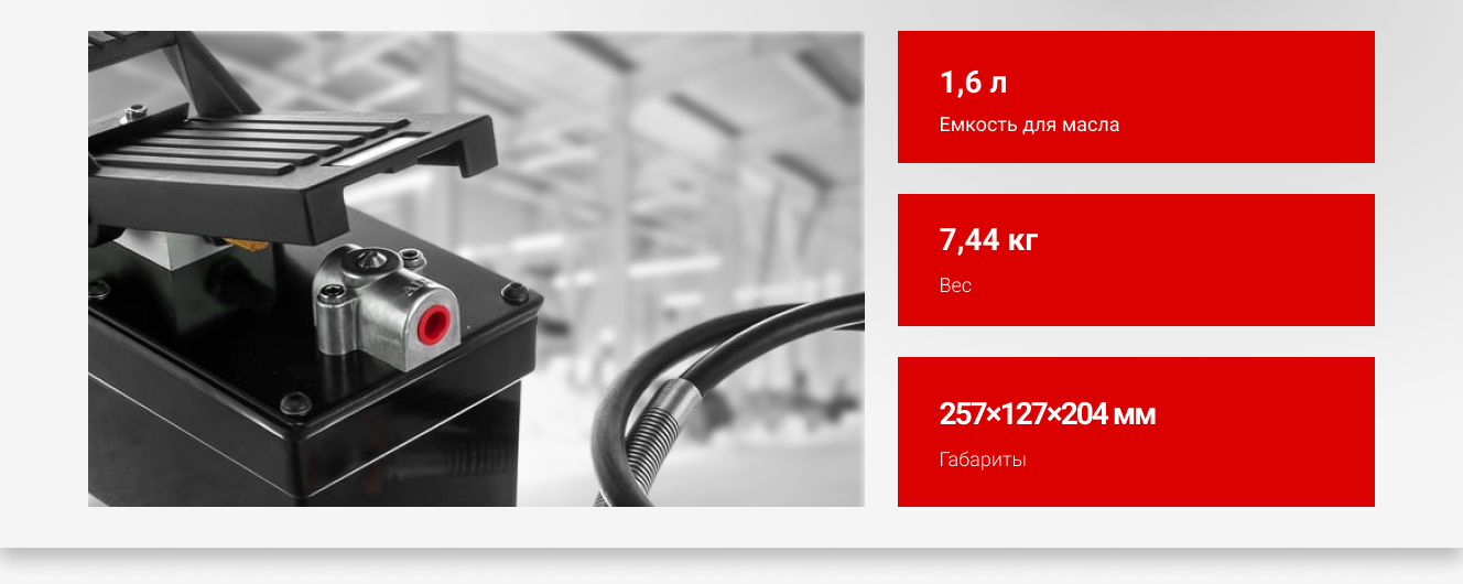 Гидравлический насос с пневматическим приводом JTC 8P120 используется совместно с различным сервисным и производственным оборудованием, исполнительные механизмы которых обладают соответствующей мощностью и производительностью, например, домкраты, прессы, рихтовочные приспособления и проч. Устройство обладает эргономичной рукояткой-педалью, с помощью которой насосом можно управлять как вручную (при настольной установке), так и ножным способом (при напольной установке).