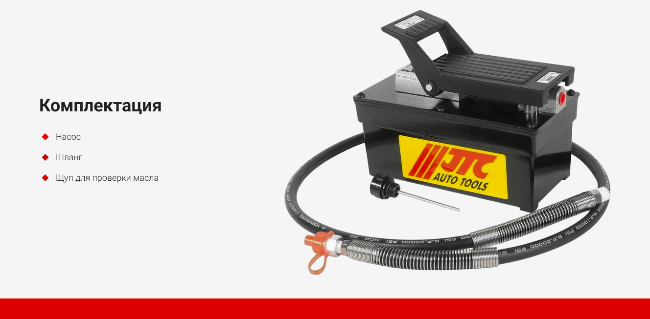 - Особо прочная конструкция гидравлического насоса с пневматическим приводом JTC 8P120 является гарантией долгого срока службы;