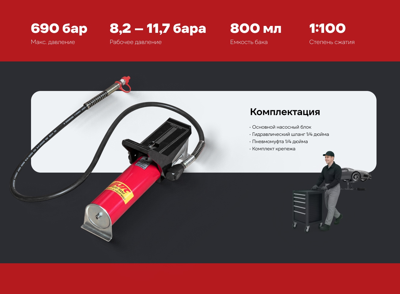 Гидравлический насос с пневмоприводом,120-170PSI JTC-8P101A