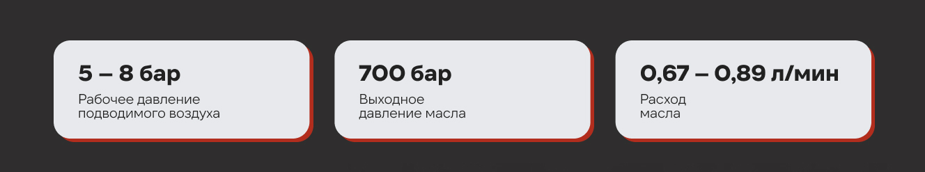 - Выходное давление масла: 700 бар
