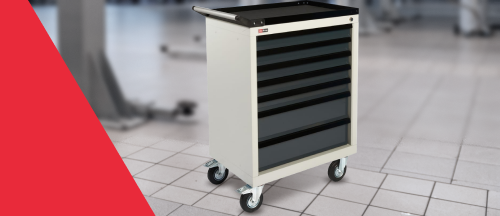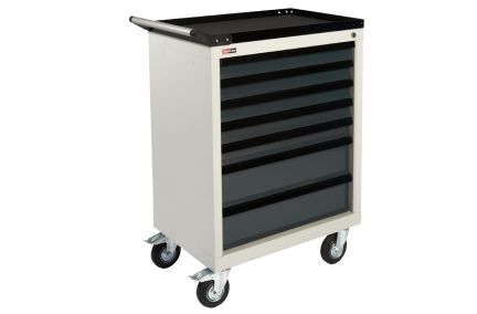 Мастерам в автосервисе удобно, когда нужные инструменты всегда под рукой. Хранить и перемещать все необходимое поможет инструментальная тележка TS-950.07 ДиКом. У нее семь сварных ящиков размерами 570×400×130 мм и 570×400×55 мм. Максимальная нагрузка на каждый – 50 кг. Тележка оснащена единым центральным замком, который закрывает все ящики.