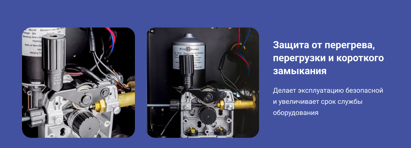 - При сварке в среде защитных газов действует уникальная схема управления, что обеспечивает меньшее разбрызгивание, стабильную дугу при сварке, отличное качество сварного шва и высокую производительность;