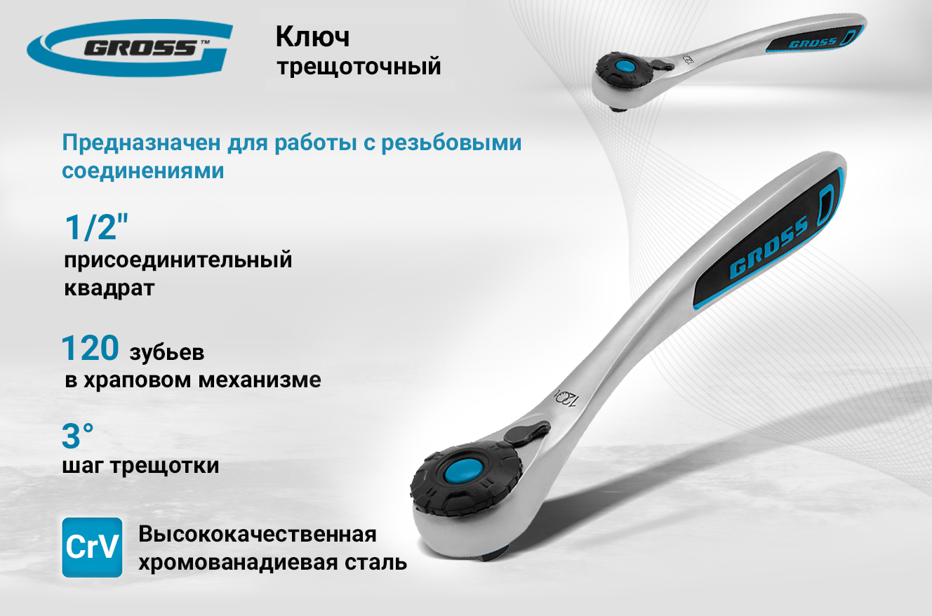 Ключ трещоточный, 120 зубьев 1/2" GROSS 14137