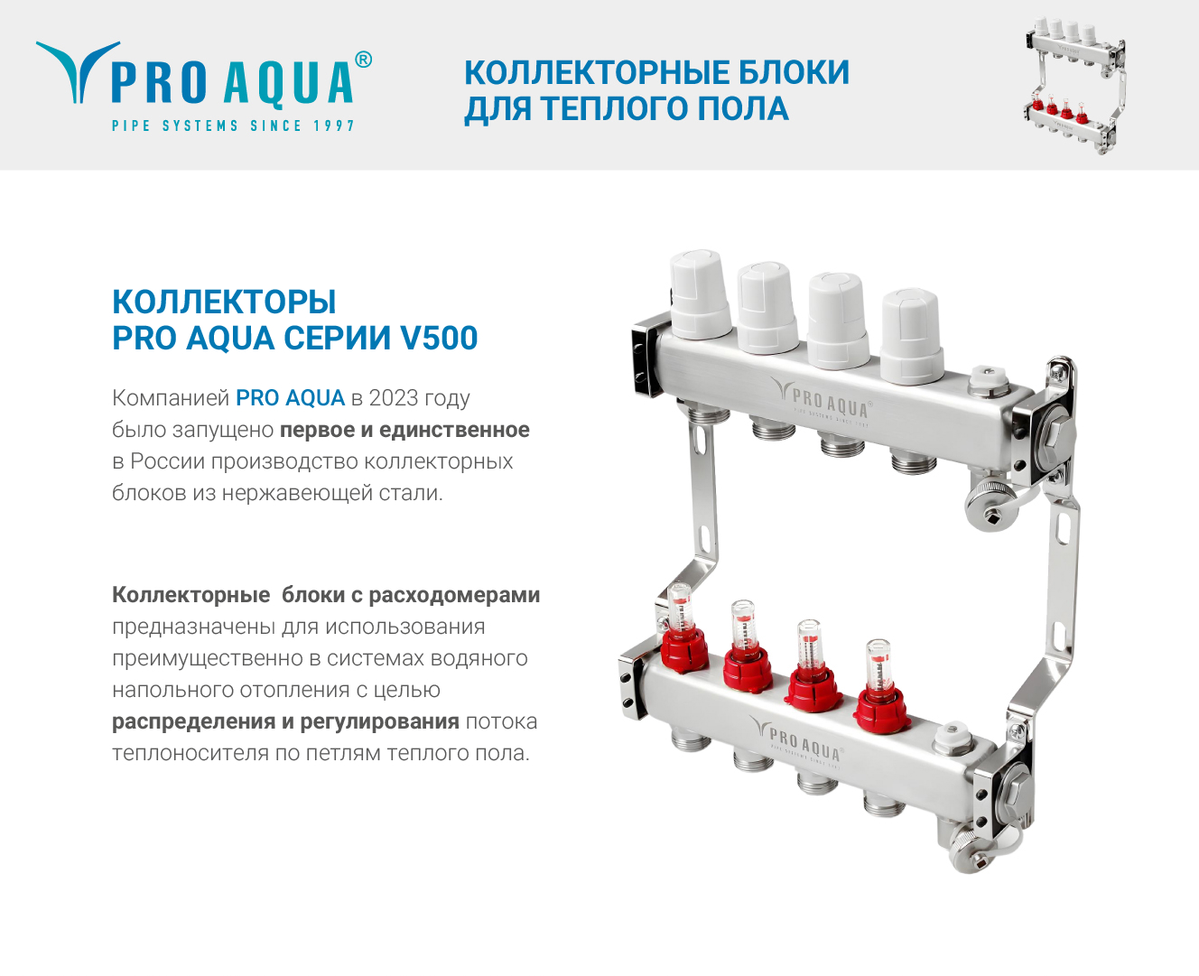 - Толщина стенки коллекторного блока PRO AQUA 8 выходов, 480 мм, 1 x 3/4 V500MB.08b увеличена и составляет 1,6 мм (стандарт 1,5 мм).