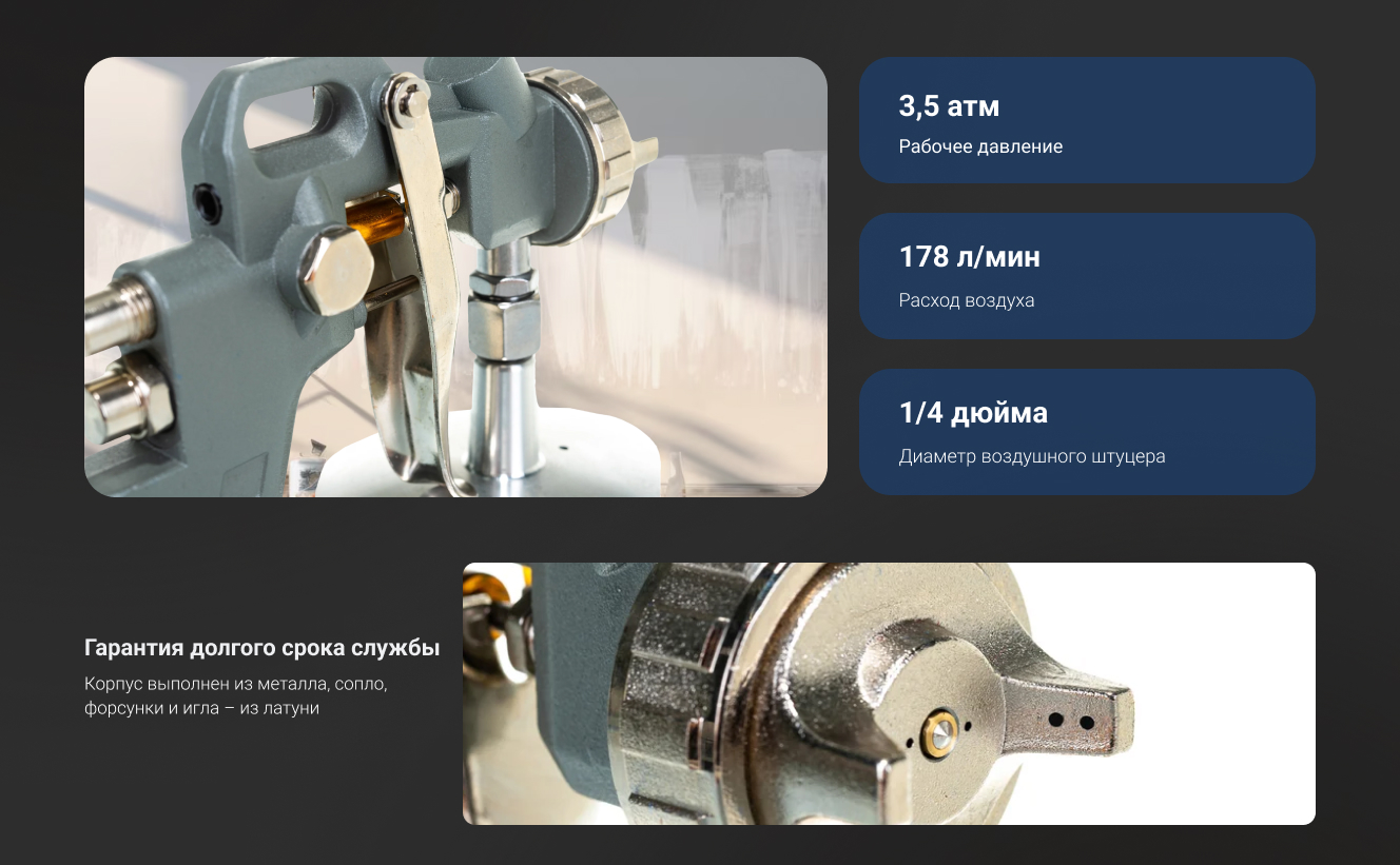 Покупал для покраски стены вододесперсионной краской. С хорошим компрессором отлично справляется со своей задачей. В комментариях написано, что в комплекте вместо быстросьема обычная резьба и нет насечки на крышке. В моём м случае все было как на фото в карточке товара.