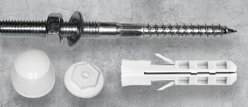 - Полный комплект Набор состоит из дюбеля, шпильки, гайки и шайбы, гайки-втулки с эксцентриком, заглушки