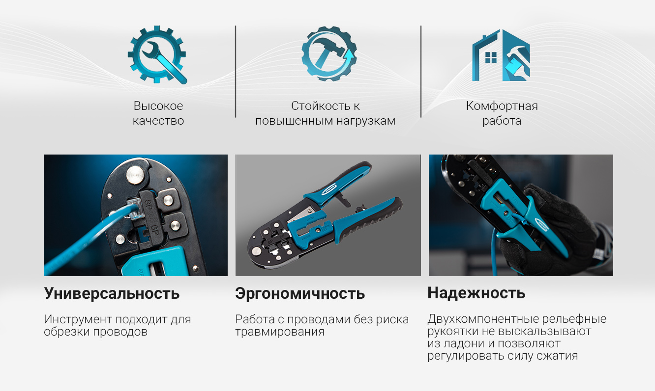 У гребешка для обжима RJ45 крайние зубья короче остальных, что не позволяло продавливать крайние контакты и кабель не прозванивался на этих пинах. Благо, средние зубья с микро-запасом и их удалось сточить до выравнивания всего гребешка. Будьте внимательны при покупке! Тщательно осматривайте гребешок!