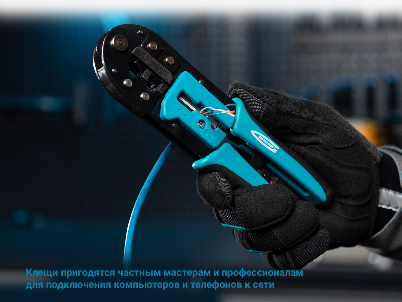 Кримпер для обжима телефонных и компьютерных клемм GROSS 17719