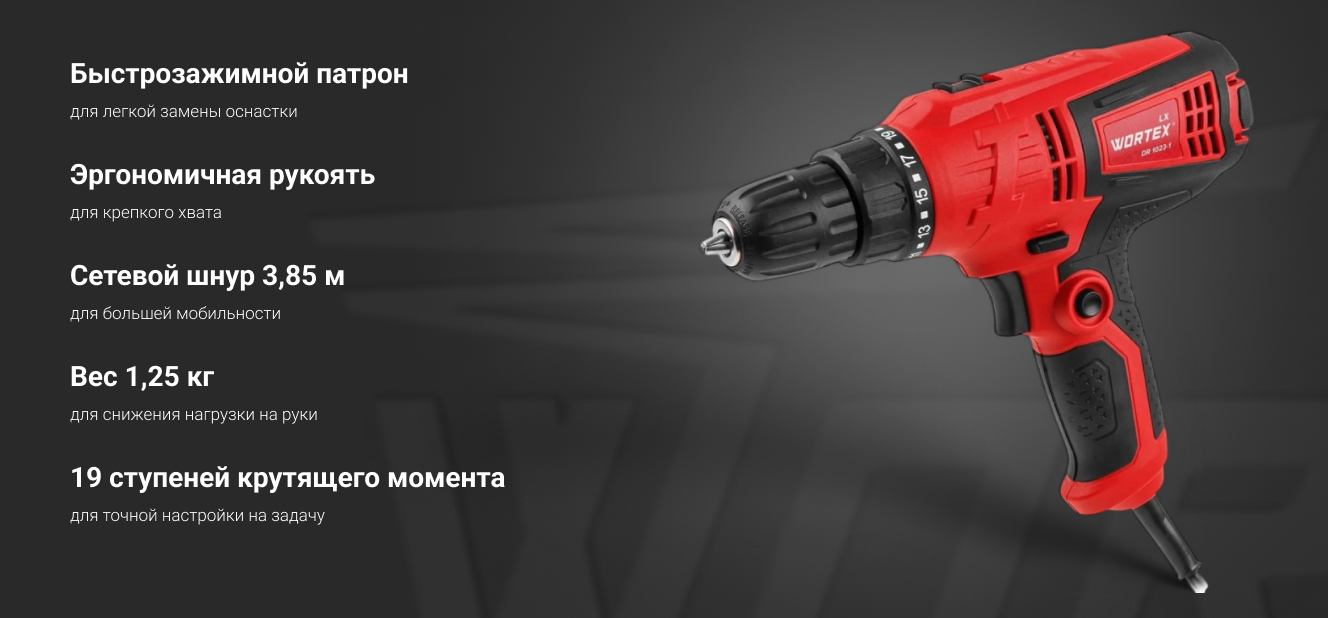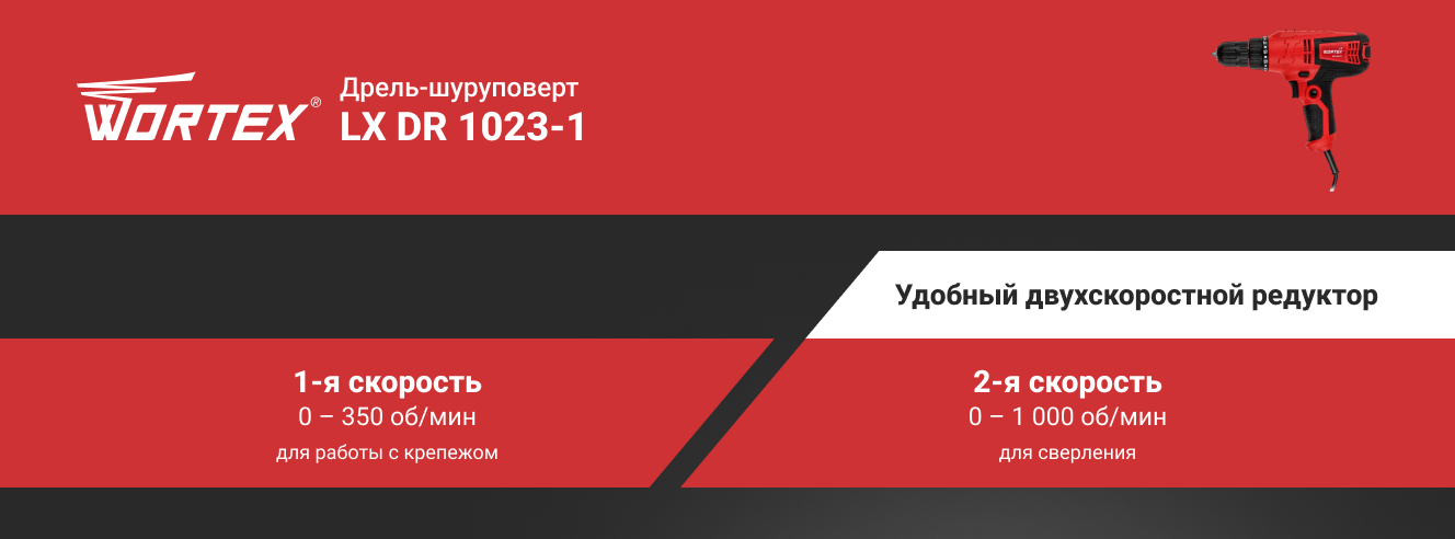 Дрель-шуруповерт WORTEX - это эффективный инструмент для множества задач домашнего использования. Обладает быстрозажимным патроном, который обеспечивает быструю замену насадок, двухскоростным редуктором, который позволяет выбрать оптимальную скорость вращения для различных материалов.