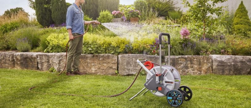 Казалось бы, трудно придумать что-то новое в ручном поливе растений с помощью шланга. Но у GARDENA есть чем вас удивить. Тележка AquaRoll M Easy упростит полив, поможет сэкономить время и силы. Вам не придется каждый раз сматывать и разматывать шланг, переносить его по участку, случайно задевать растения. С этим приспособлением вы получите мобильную систему. А направляющий ролик не даст шлангу волочиться по земле.