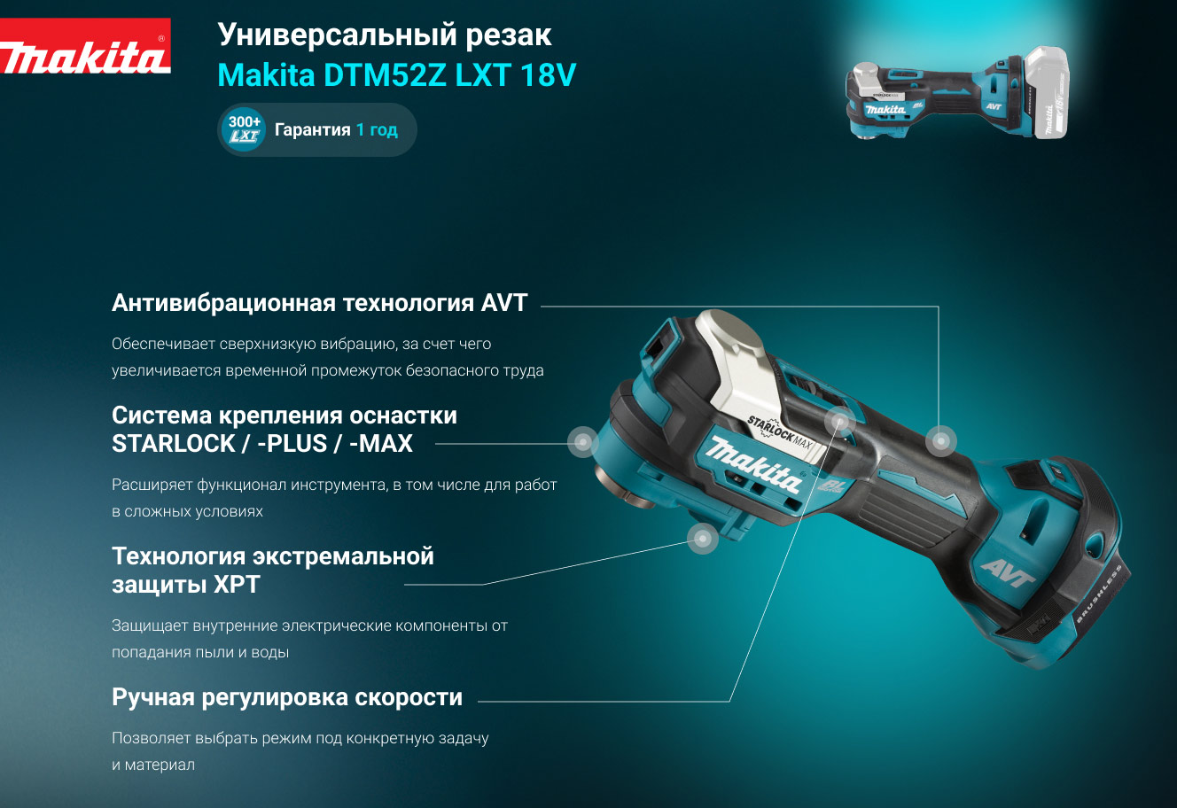 Многофункциональный аккумуляторный инструмент Makita 18 В, Li-ion, BL , AVT, XPT, STARLOCK, кор, б\акк и з\у DTM52Z