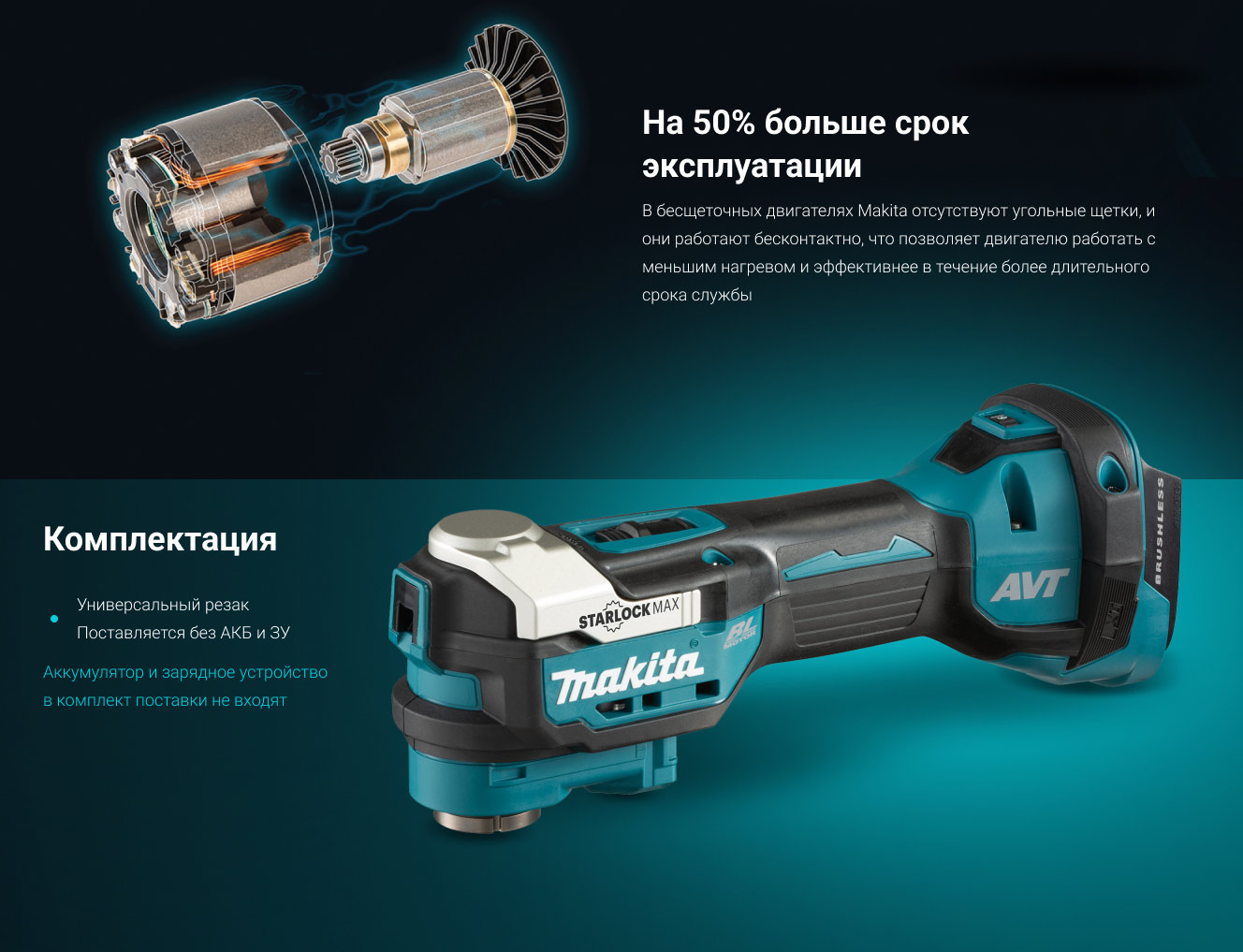 Установлен бесщёточный мотор, экономичный и производительный. Насадки STARLOCK одни из самых эффективных, подходят и STARLOCK PLUS и STARLOCK MAX. Инструментом легко и приятно работать, регулировка скорости в зависимости от поставленных задач. Справляется с задачами, которые невозможно выполнить обычными инструментами!