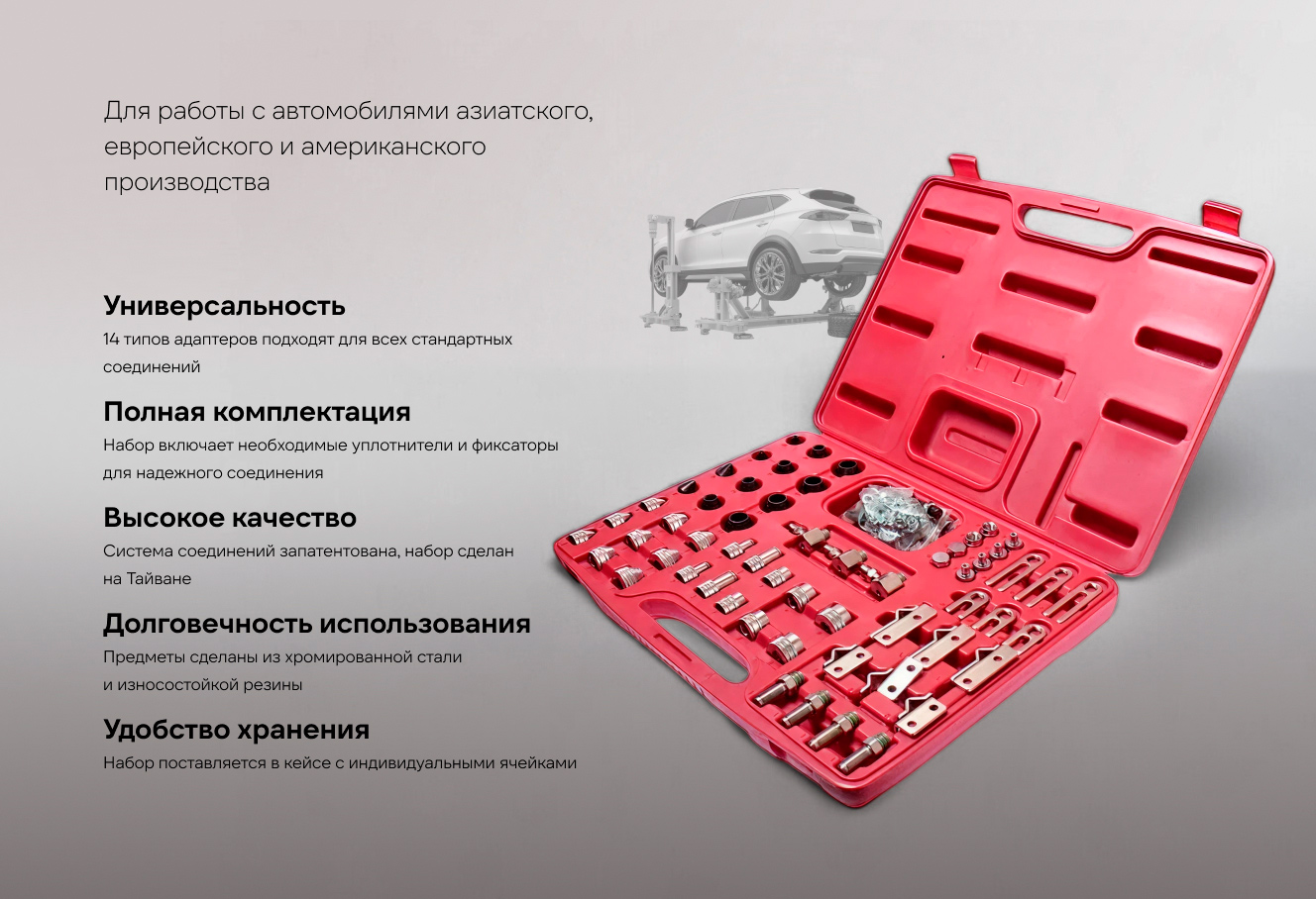 Технические характеристики набора адаптеров для тестирования автокондиционера JTC JTC-1402
