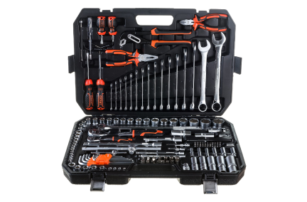 Торцевые головки и биты основных типоразмеров помогают справиться с любым крепежом. Переходники, удлинители, адаптеры для бит и карданные шарниры дают возможность подлезть к труднодоступным местам, например, при съеме маховика оппозита. Дополнительные инструменты, такие как отвертки, бокорезы, переставные клещи и пассатижи, расширяют сферу применения набора.