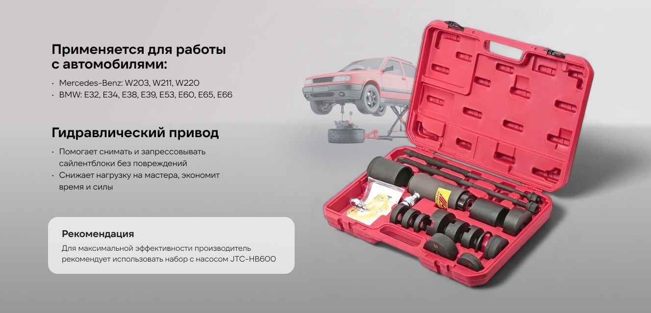 Набор для снятия и установки сайлентблоков подрамника с гидроприводом JTC 4820
