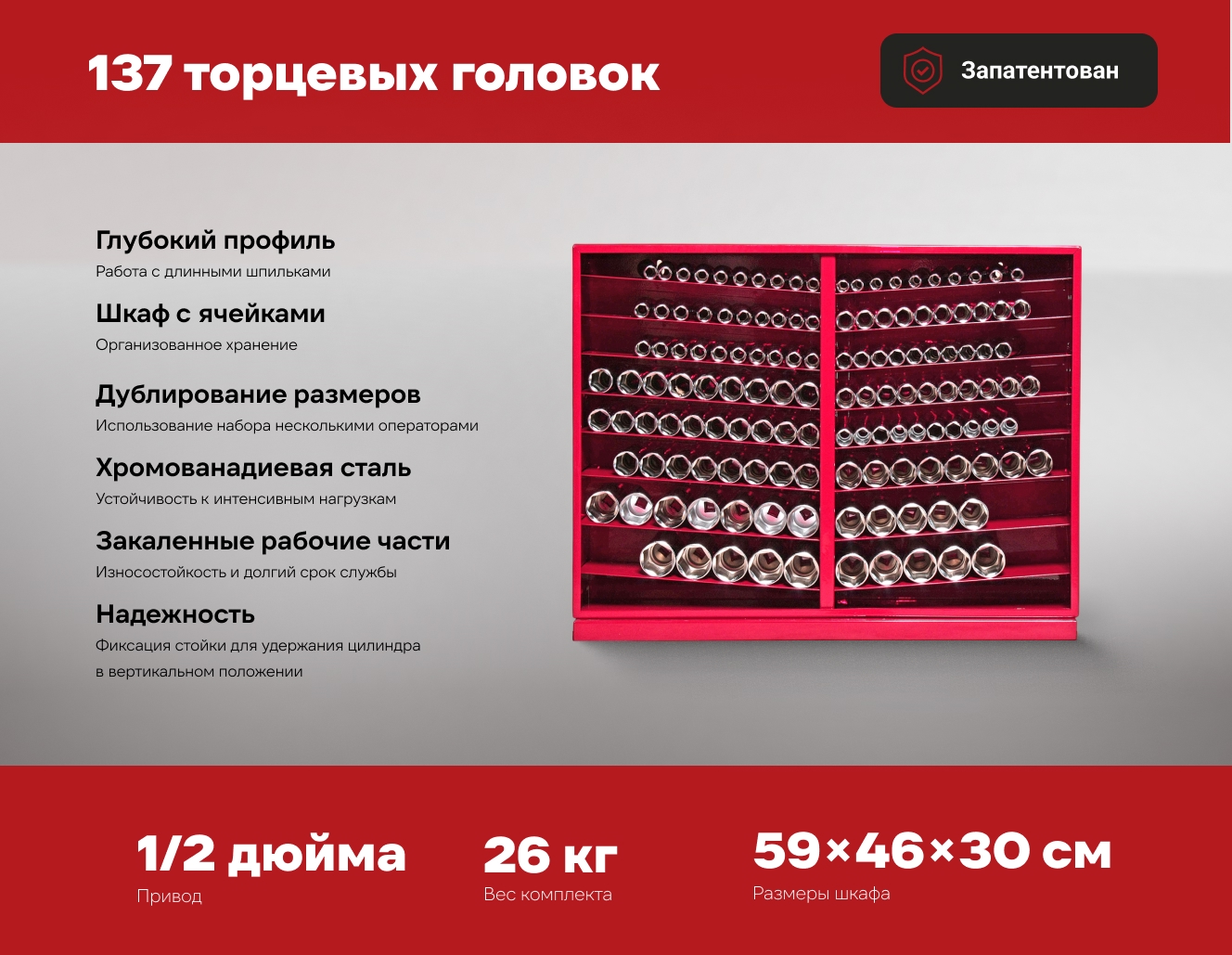- Металлический шкаф для хранения головок 590х460х300 мм.