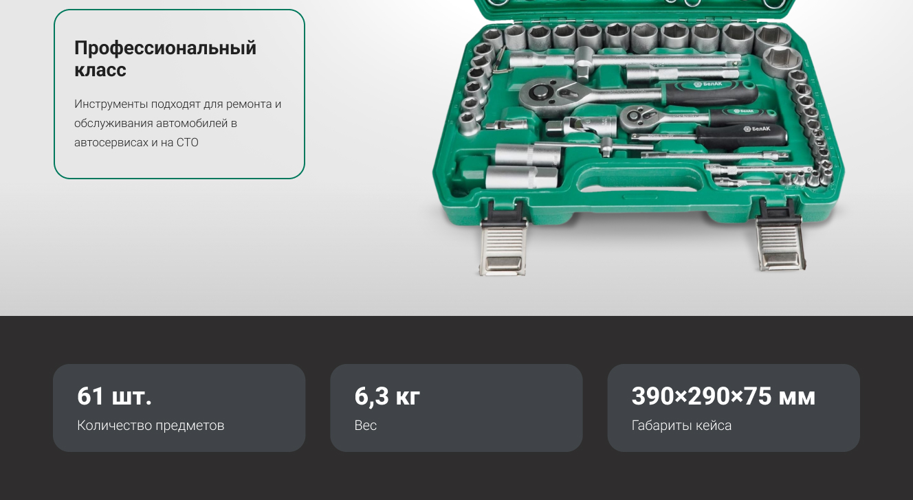 Благодаря удачно подобранной комплектации набор подойдет для большого количества различных задач, существенно снижает зависимость от стороннего инструмента и позволяет эффективно работать, не прибегая к дополнительным комплектам.