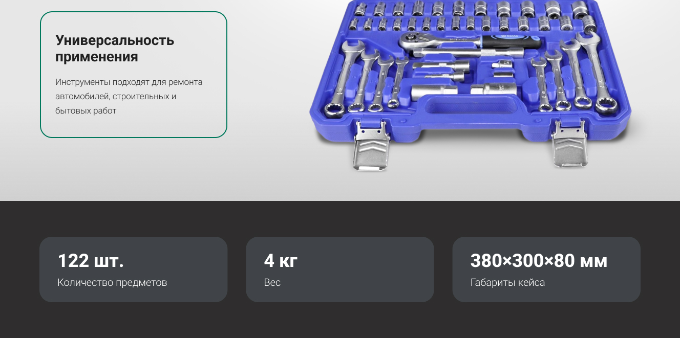 Благодаря удачно подобранной комплектации набор подойдет для большого количества различных задач, существенно снижает зависимость от стороннего инструмента и позволяет эффективно работать, не прибегая к дополнительным комплектам.