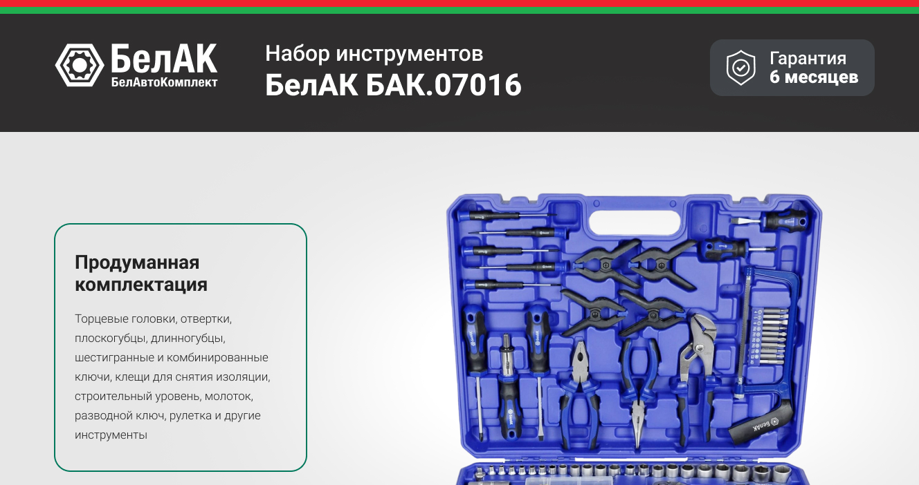 Технические характеристики набора инструментов БелАК БАК.07016