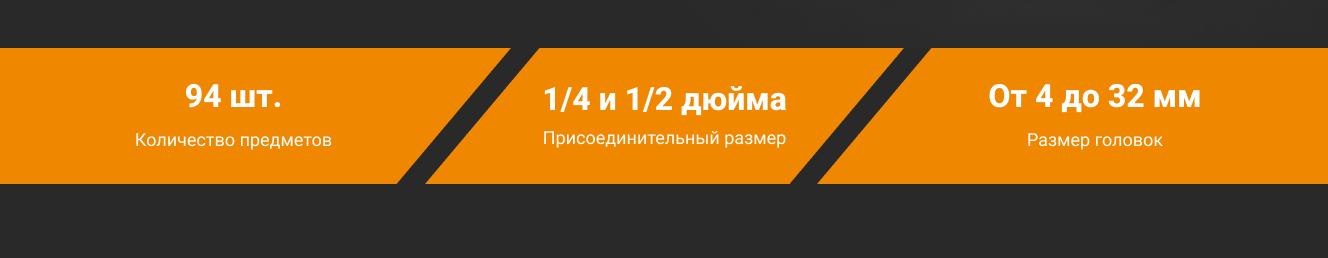 - Головка торцевая 1/2": 10, 11, 12, 13, 14, 15, 16, 17, 18, 19, 20, 21, 22, 23, 24, 27, 30, 32 мм;